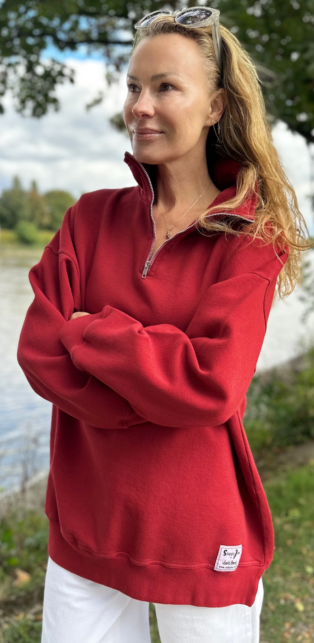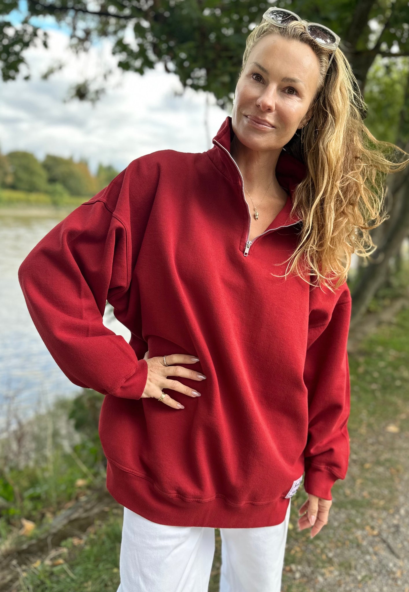 The Diana Zip Neck has an open neck with zip, and a distinctive oversized quality sweatshirt appeal. The style features ribbed cuffs and hem, with flattering side splits and a hem tag detail.