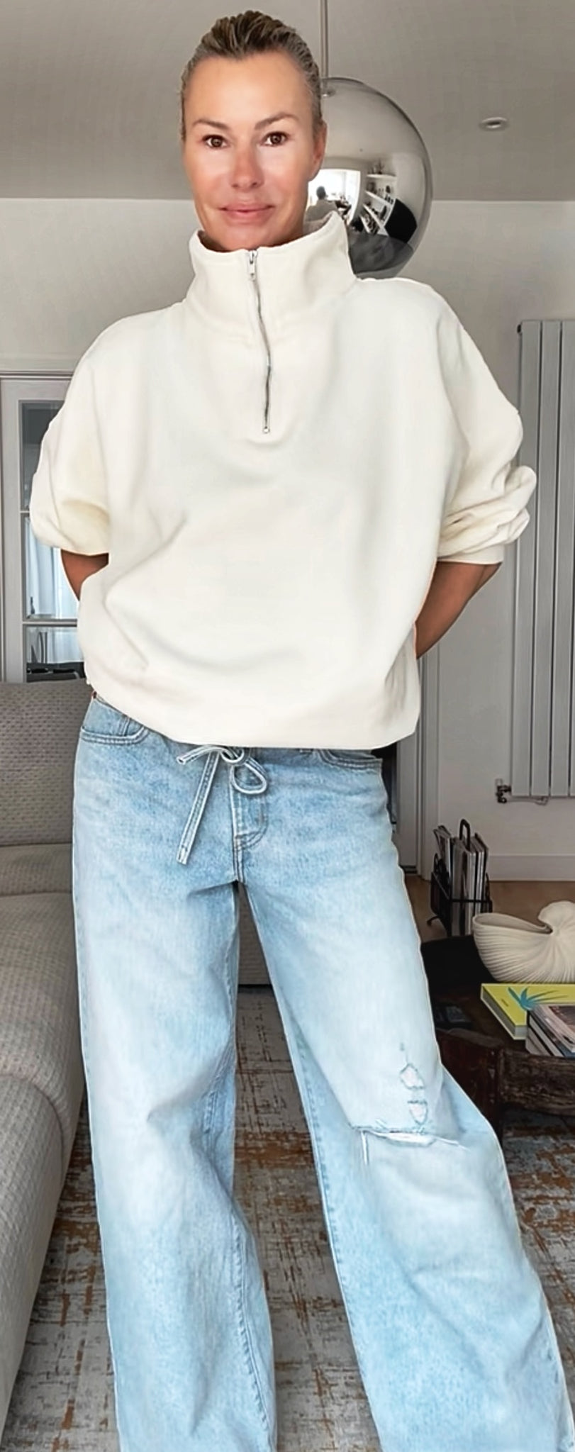 The Diana Zip Neck has an open neck with zip, and a distinctive oversized quality sweatshirt appeal. The style features ribbed cuffs and hem, with flattering side splits and a hem tag detail.